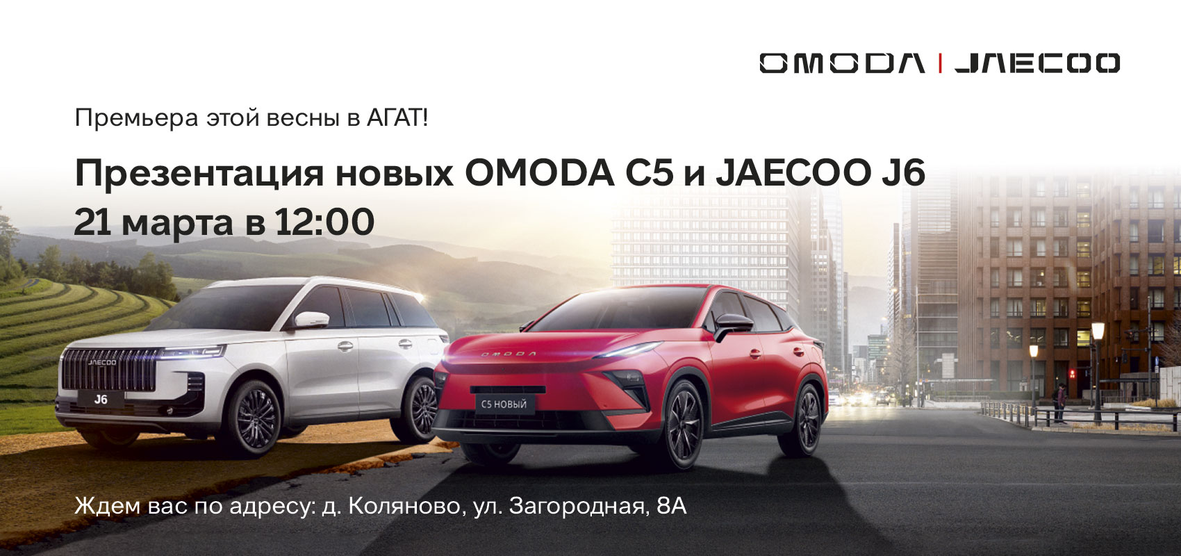 21 марта в 12:00 дилерский центр АГАТ Иваново приглашает вас на эксклюзивную премьеру: мы представим совершенно новые OMODA C5 и JAECOO J6.